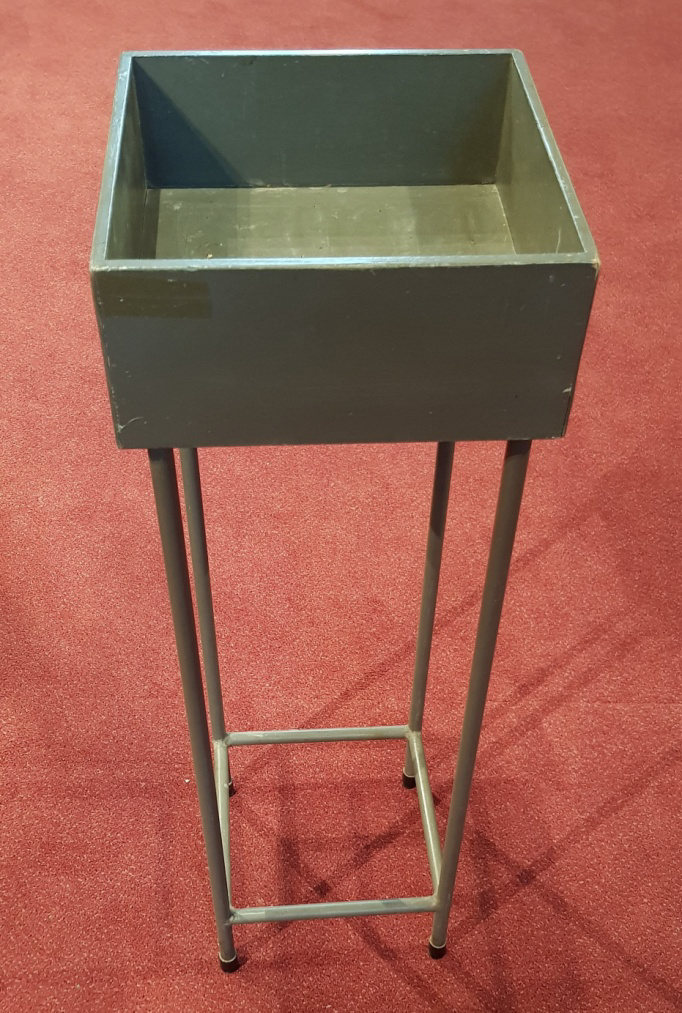 | Beschrijving: | – houten bakje op metalen onderstel |